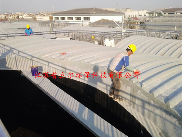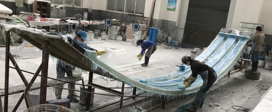 玻璃鋼拱形蓋板初步制作中(外表防紫外線膠衣層)